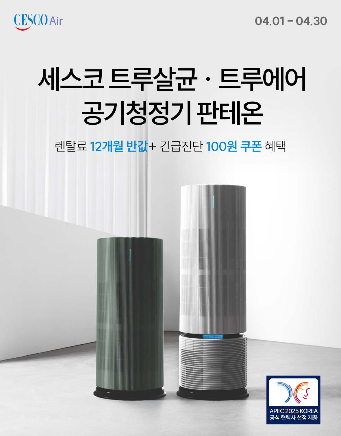 [렌탈료 최대 12개월 반값] 트루살균 공기청정기 판테온 (25평/코튼 화이트)