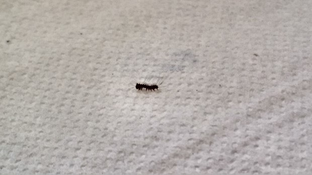수시렁이류의 유충입니다. 수시렁이와 같은 저장식품 해충의 경우 반드시 발원지를 찾아야 합니다.