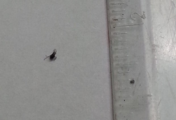 벌레 크기가 아주 작아요. 사진에서 보듯 1 mm 가 안됩니다 . (새끼라서 작은건지, 원래 작은건지 모르겠네요)