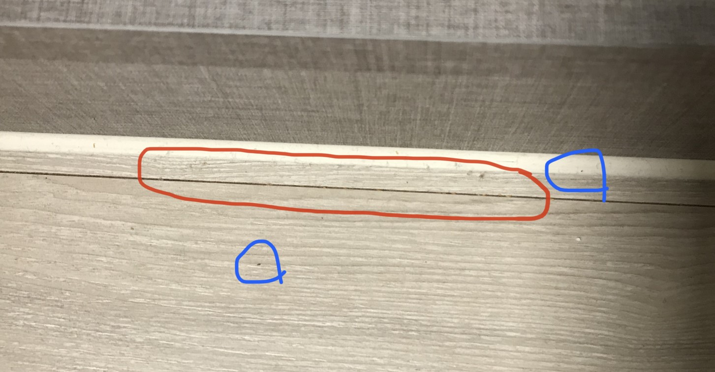 개체수가 많지 않아 외부에서 유입된 것이라 생각했었는데 붙박이장을 확인해 보니 사진과 같은 애벌래와 기어다니는 벌레들을 발견할 수 있었습니다ㅠㅠ