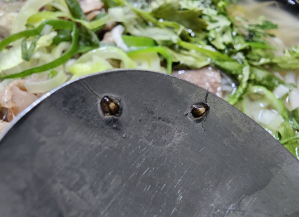 음식을 먹다가 쪼매난 벌레가 있어서 숟가락을 떠봤는데.