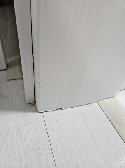 문 틀 틈에서 치워도 치워도 계속 나무 가루가 생기는데(사진첨부1) 오늘은 근처와 문턱에서 하얗고 갈색의 먼지다듬이?로 보이는 벌레들을 발견 했습니다..