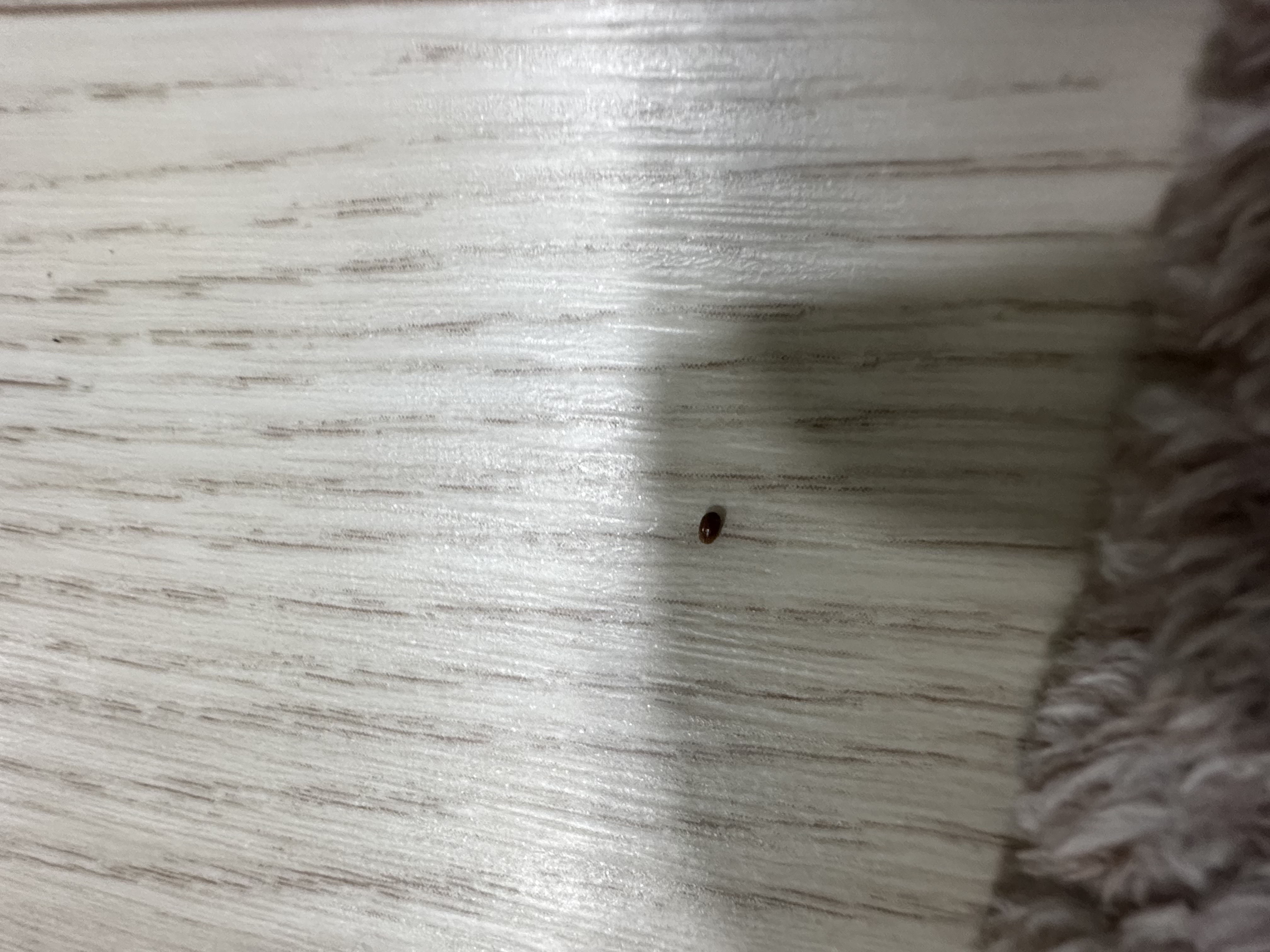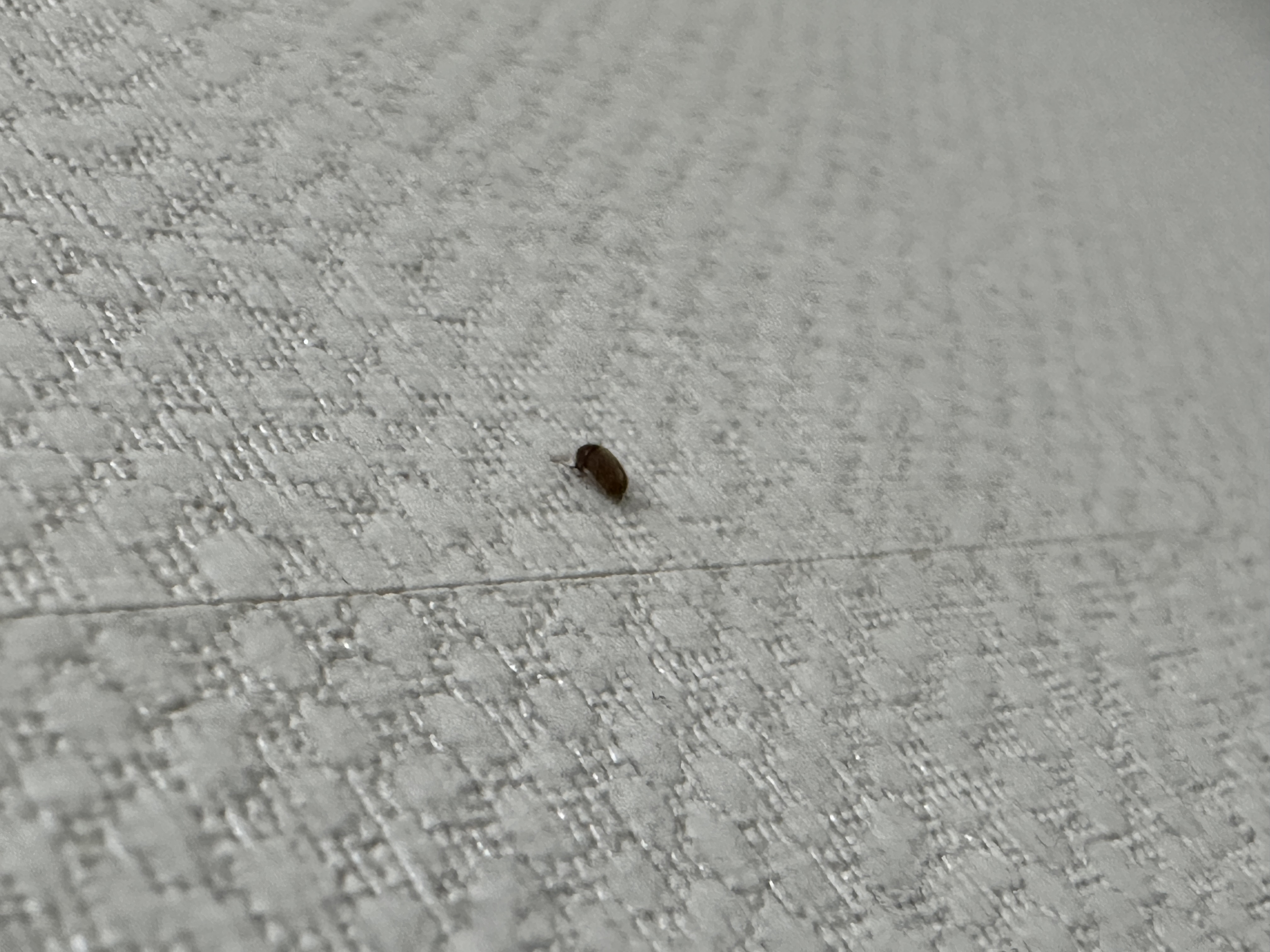 사진으로 명확하지 않지만 저장식품해충에 속하는 곤충 중 권연벌레로 추정됩니다.