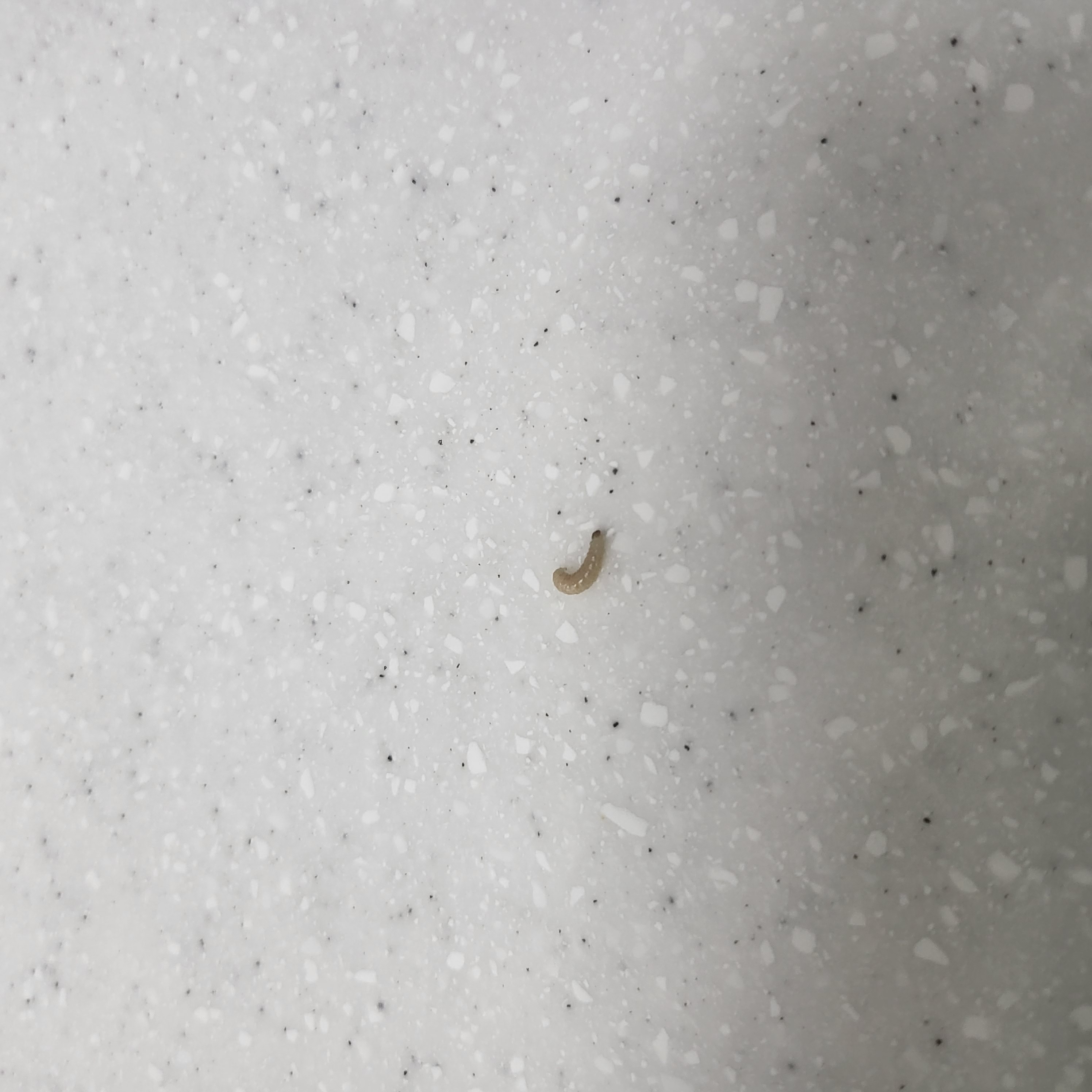 사진이 명확하지는 않지만 저장식품해충 중에서 가장 유명한 화랑곡나방 유충으로 추정됩니다.