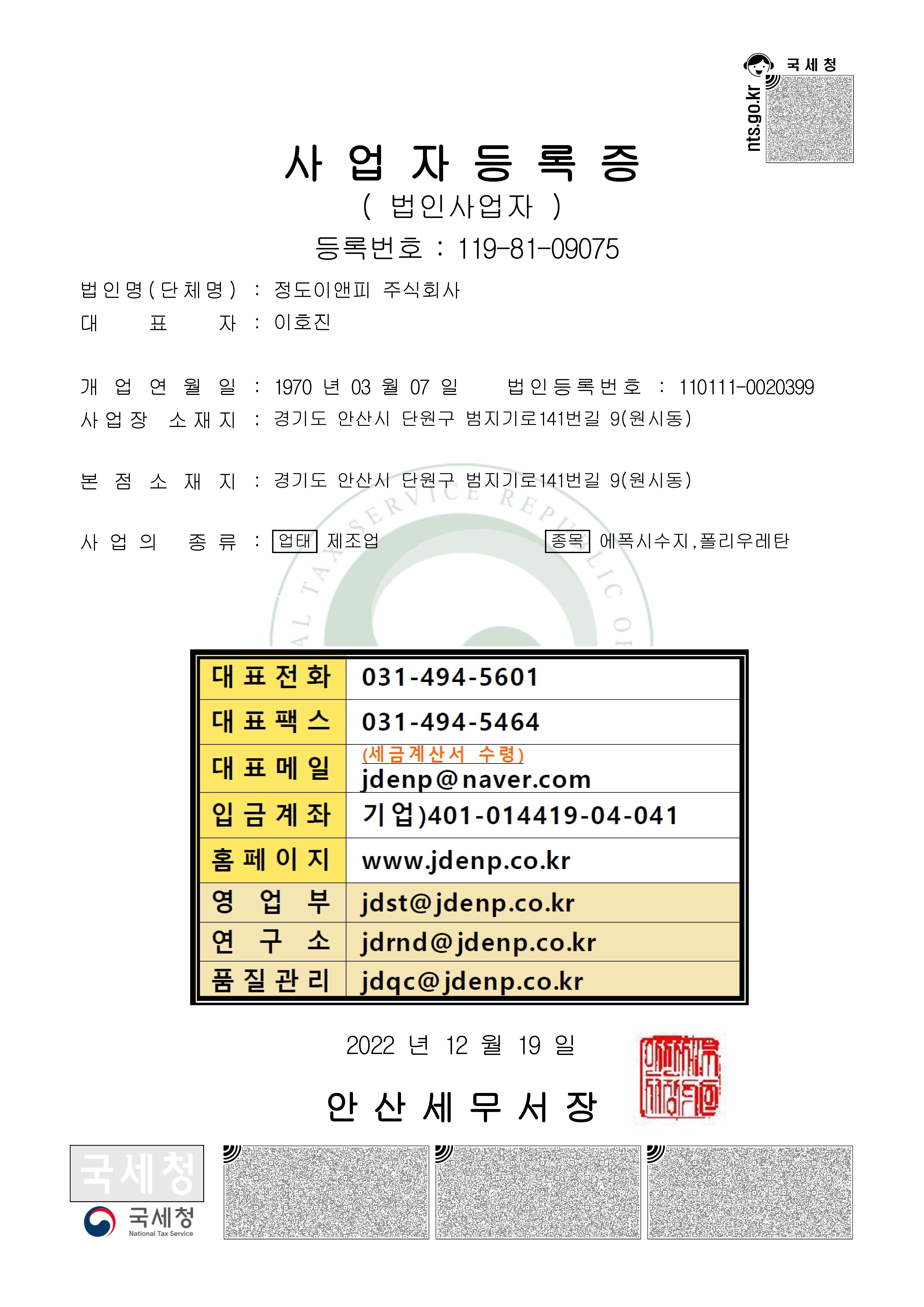 변경된 사업자등록증을 담당 지부 팩스로 발송 부탁드립니다.