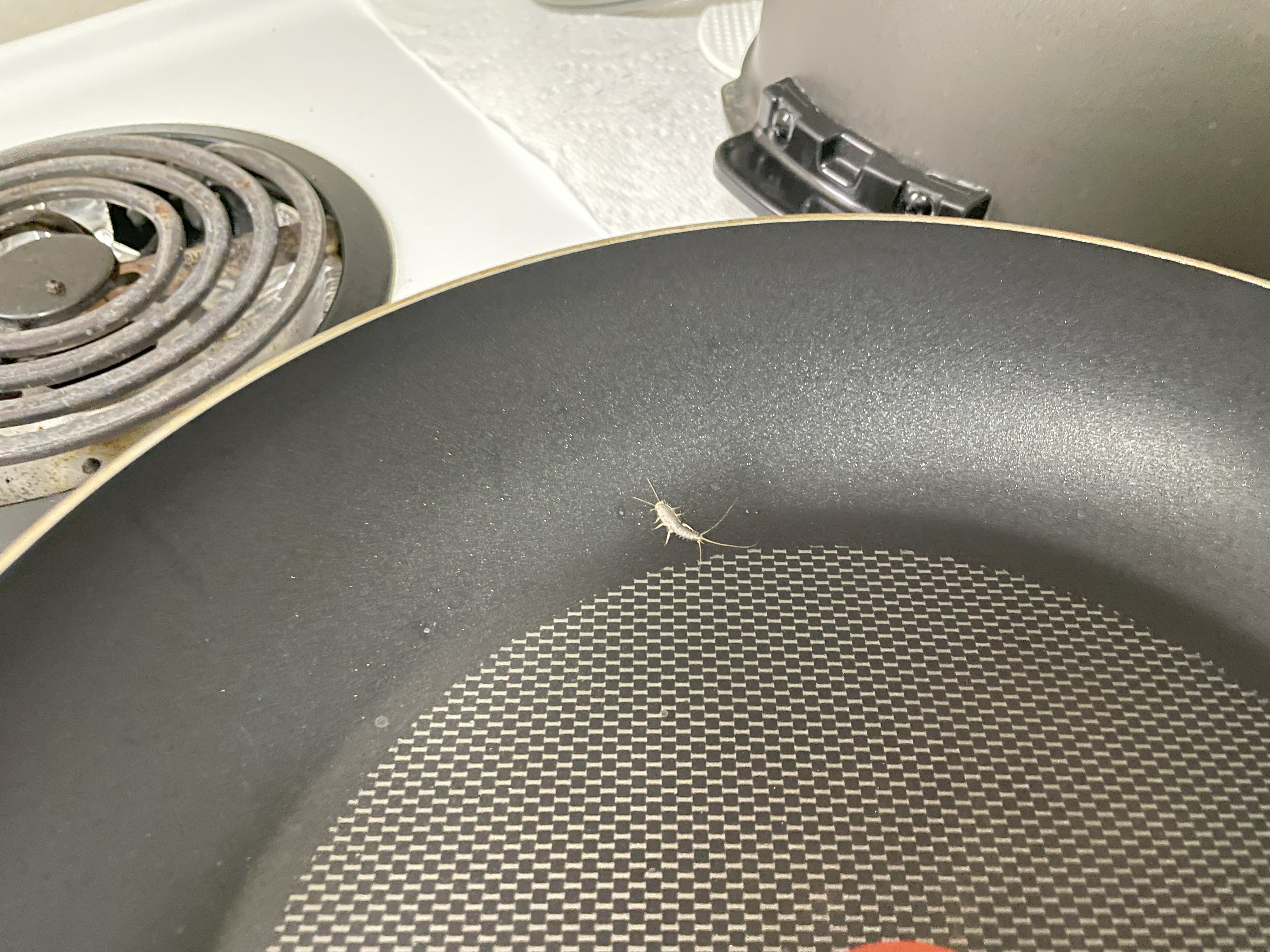 그런데, 부엌과 화장실에서 아래 사진의 후라이팬에 앉아 있는 생명체가 출몰합니다.