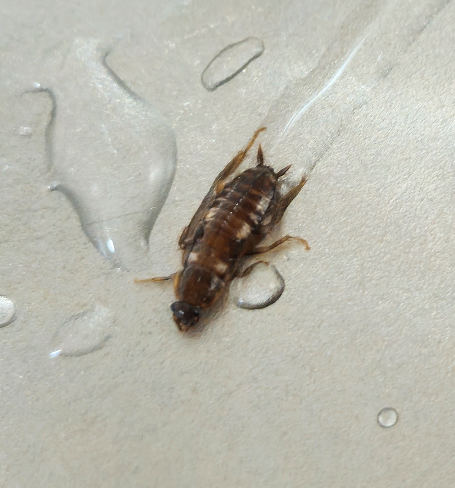 아래 화장실에서 발견한 녀석은 제법 쌩쌩한 상태였지만 뿌리는 바퀴약을 맞고 죽었습니다.