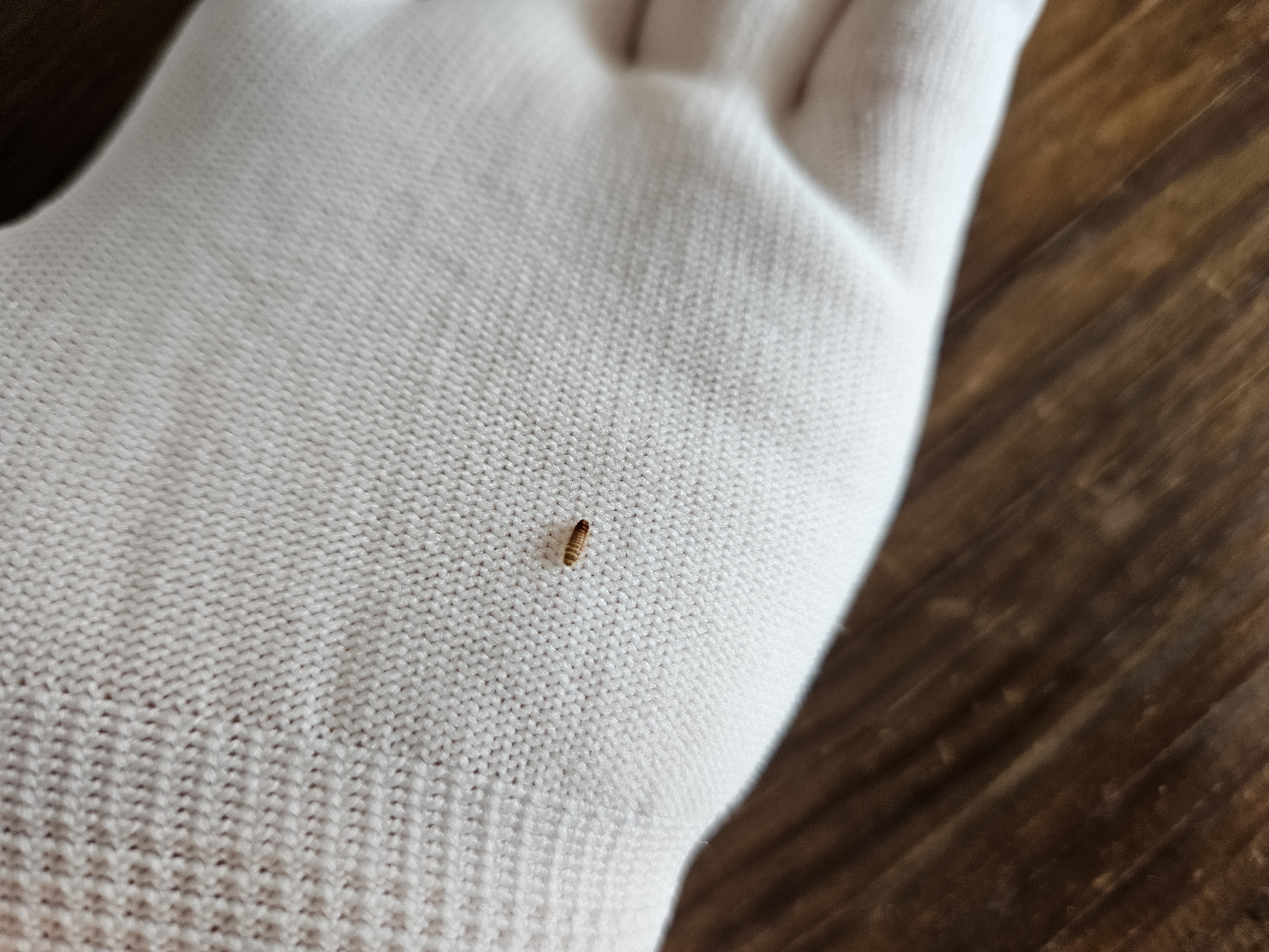 저장식품해충에 속하는 한 과인 애수시렁이 유충으로 추정됩니다.
