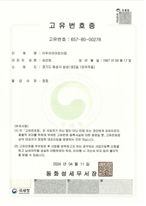 현재 세스코서비스 이용하고 있는 이우아이어린이집 입니다.