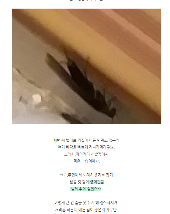 날개달린 엄지손가락보다 큰 벌레가 벽에 붙어있더라구요