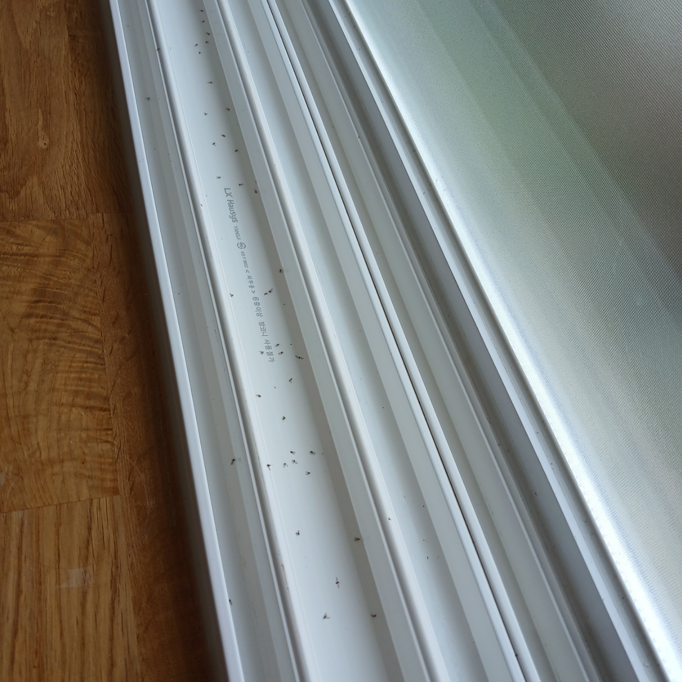 그리고 창틀 아래쪽을 보면 물빠짐틈새가 있는데, 이 부분도 모기장이나 방충망 조각을 구입해 붙여 막아 두면 침입을 최소화하는데 도움이 많이 될 겁니다.