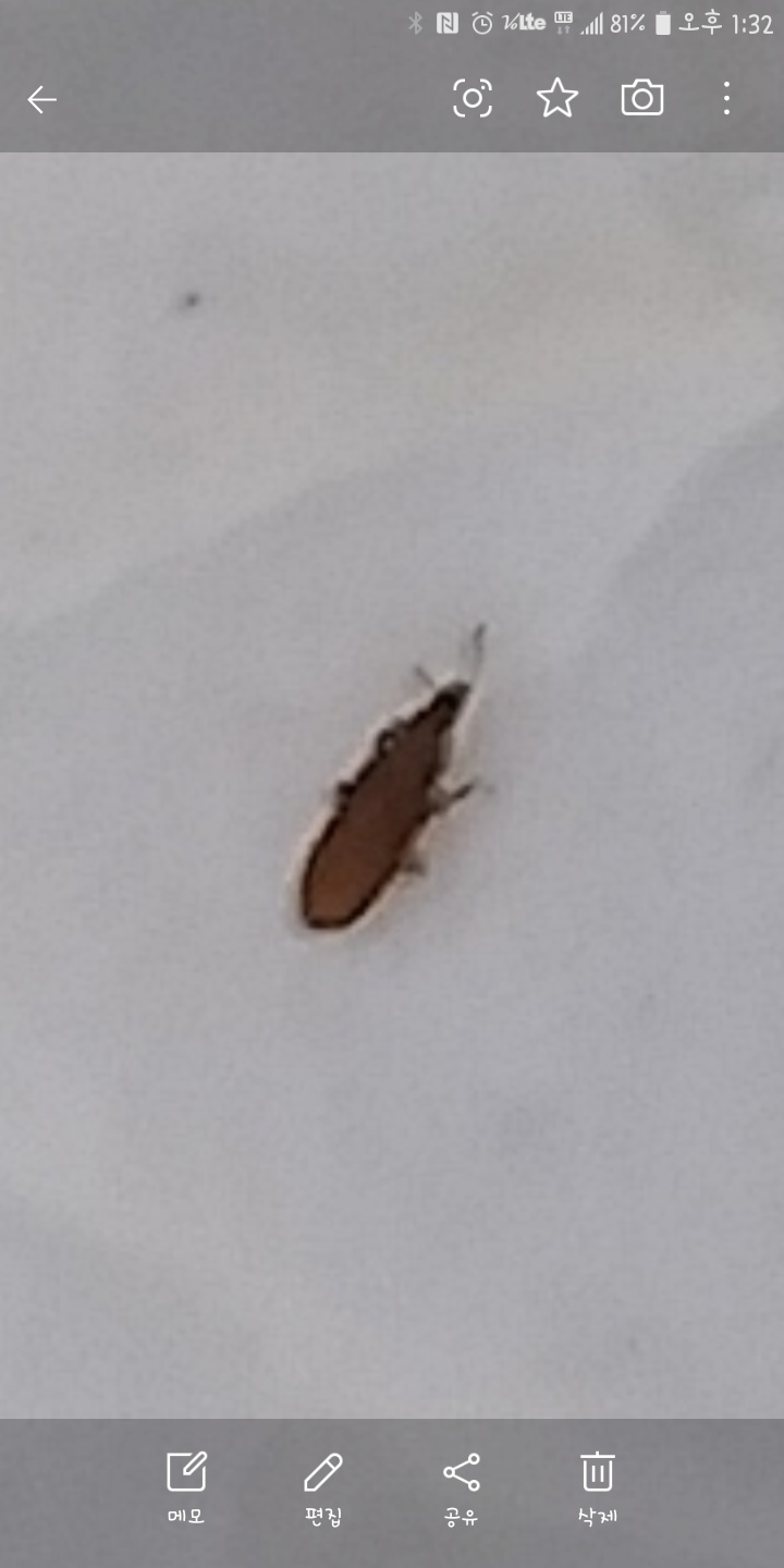 첫번째는 죽어 있었고 길이는 3mm 정도, 두번째는 욕실 타일 벽에 붙어 있었는데 움직이진 않았고 몸 길이가 거의 1mm 로 정말 작았으며 육안상으로는 벌레도 보이지도 않을만한 그냥 점이나 티끌 같았어요. 사진을 최대한 분명하게 찍으려고 해도 저정도밖에 안 나올 정도로 작았어요. 아래 두 가지 벌레 뭔지 궁금해요..집에서 혹시 번식하는 건지 우연히 창문 틈에서 기어 들어온 것들인지 알려 주실 수 있을까요? 이메일로도 답장을 주시면 감사드릴게요