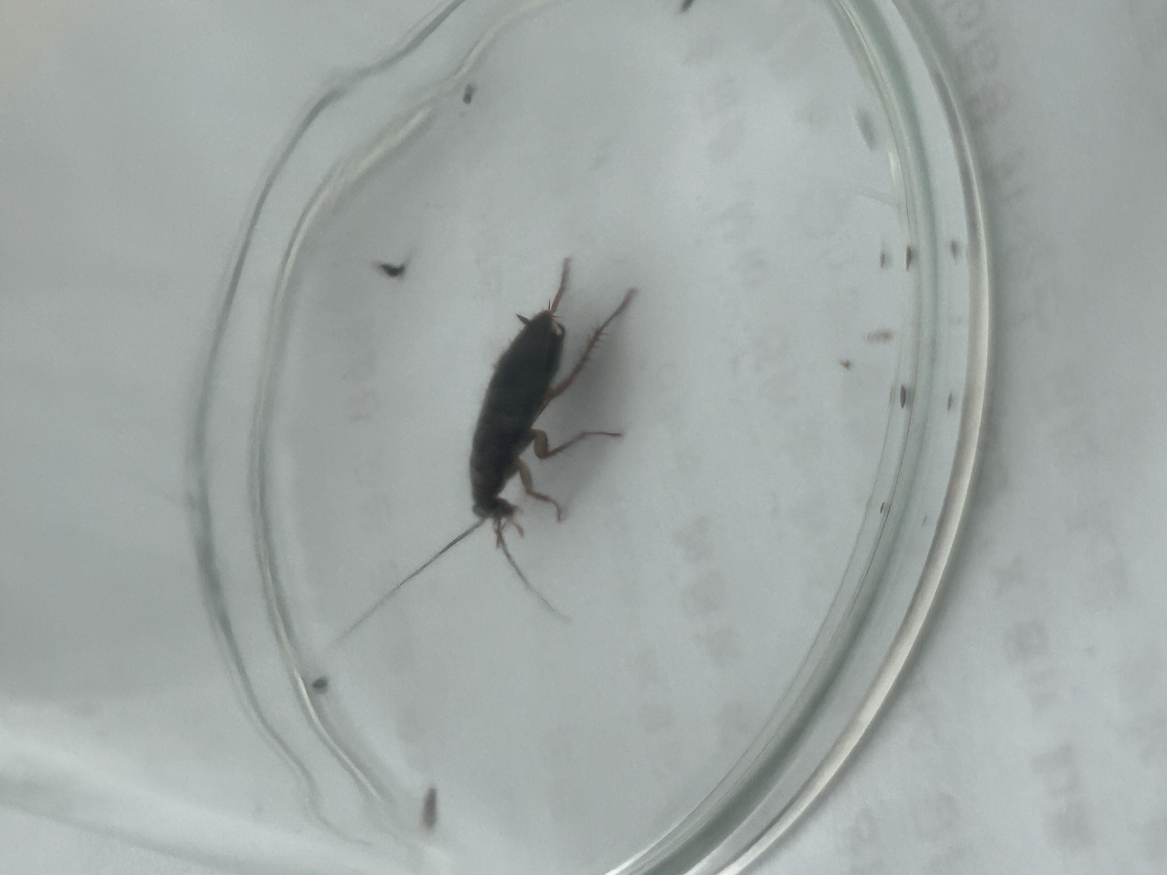 외견상 바퀴벌레인가 의심하고 있는데, 바퀴벌레는 빠르다고 하는데 이 벌레는 상당히 느려서 한 번 놓치고도 유리컵으로 쉽게 가둘 수 있었습니다.