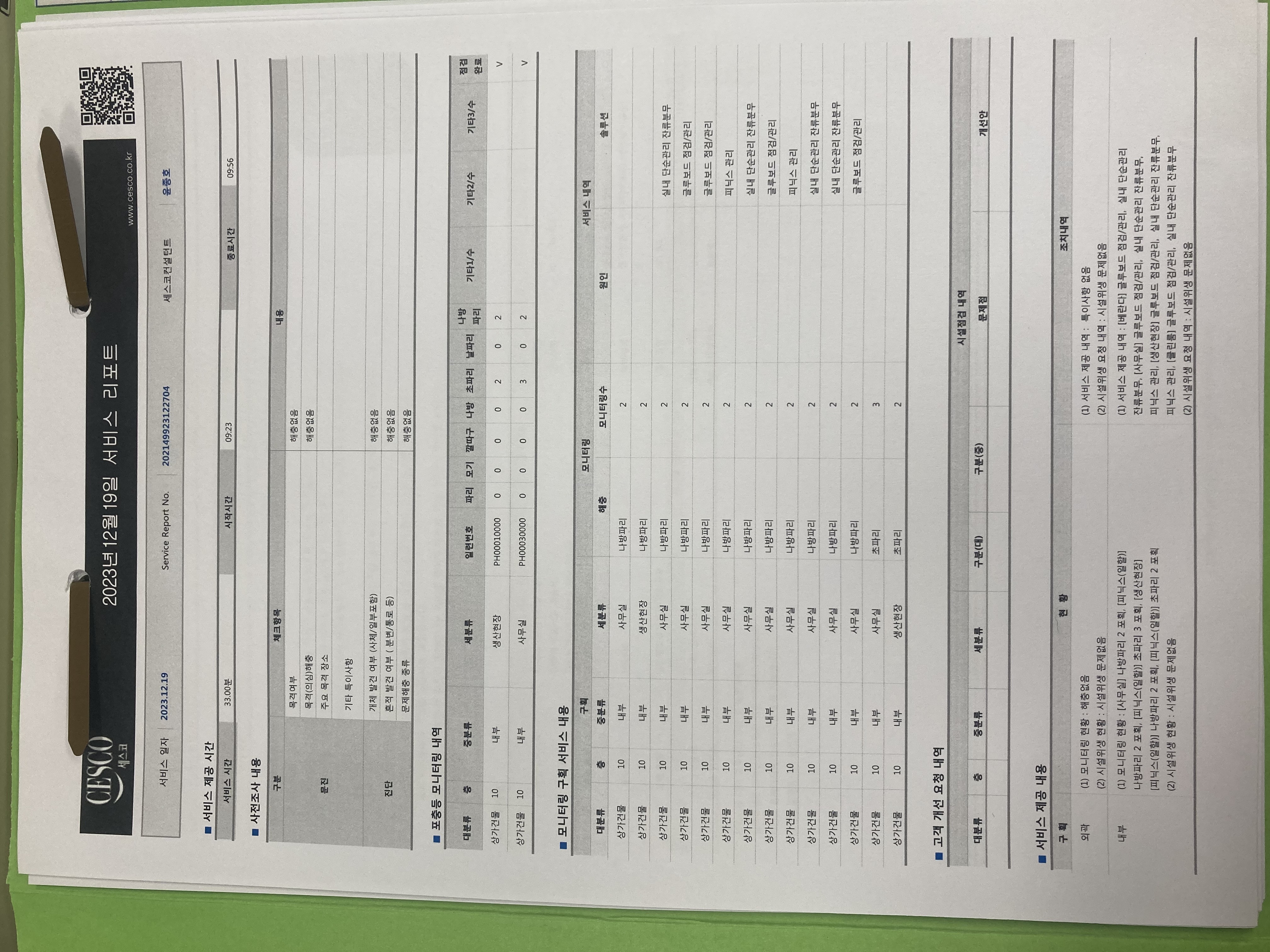 세스코 서비스 리포트 관련 문의입니다.