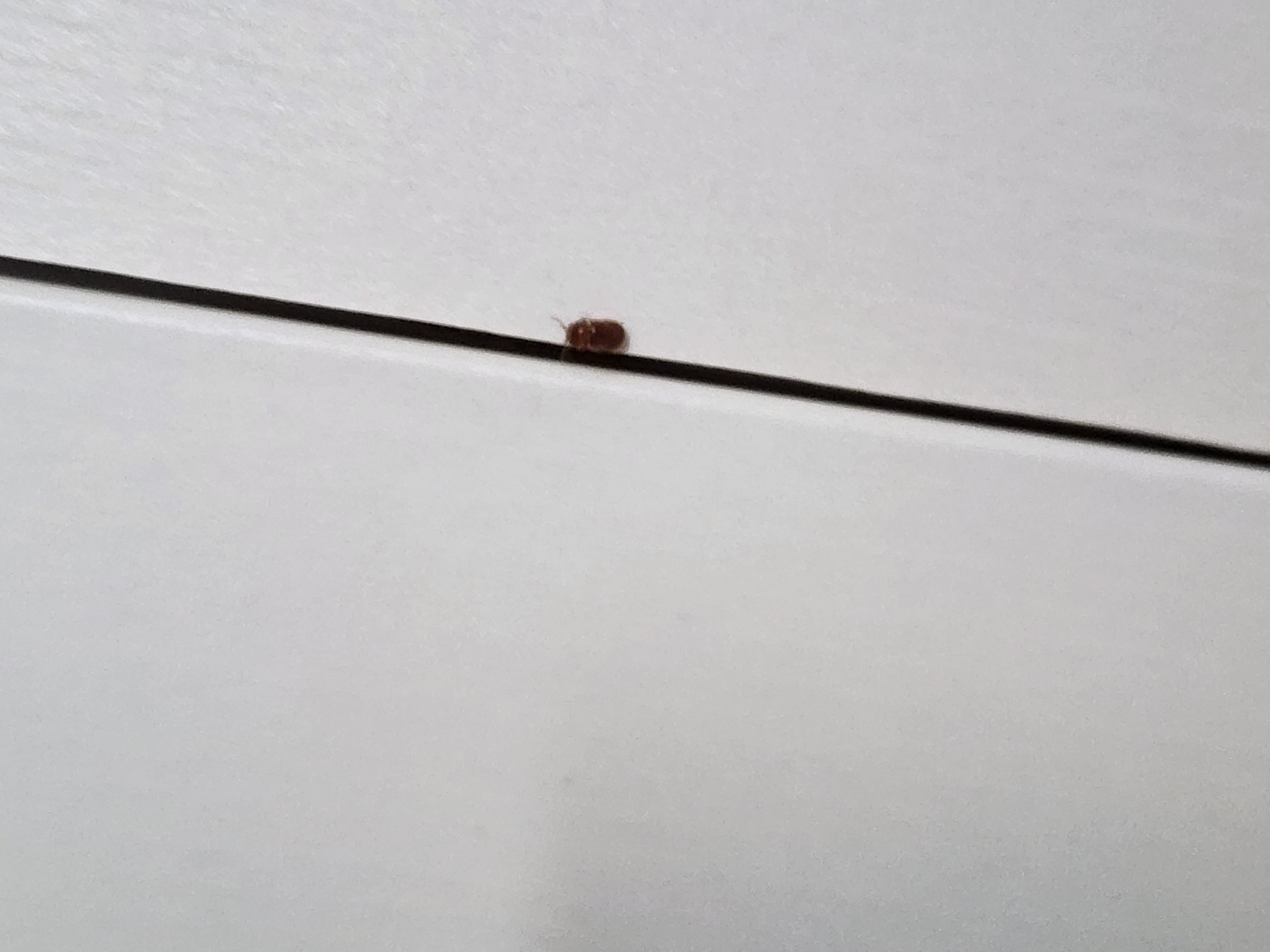 사진으로 명확하지 않지만 저장식품해충에 속하는 곤충 중 권연벌레로 추정됩니다.
