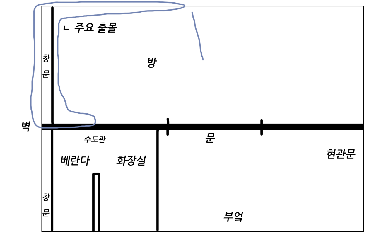 화장실 주변과 싱크대 주변에서 많이 목격되는 경우가 많으니