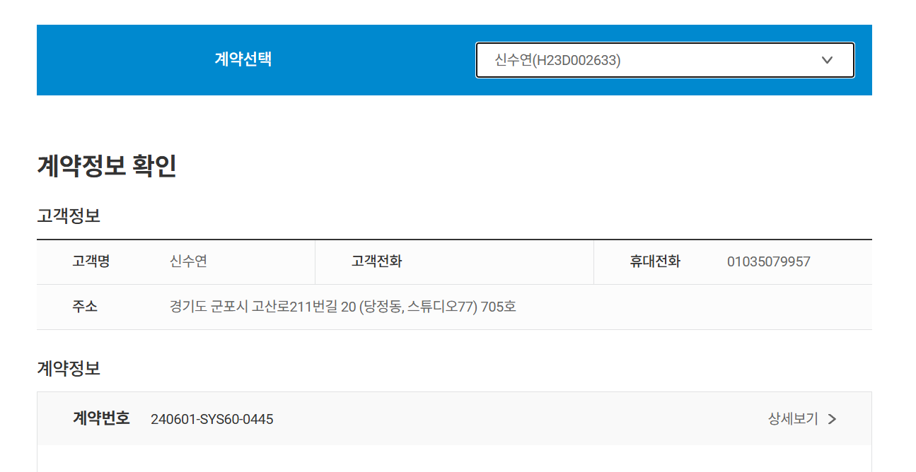 계약 이후 연락처가 변경되어서 회원정보에는 변경된 번호로 입력되었는데