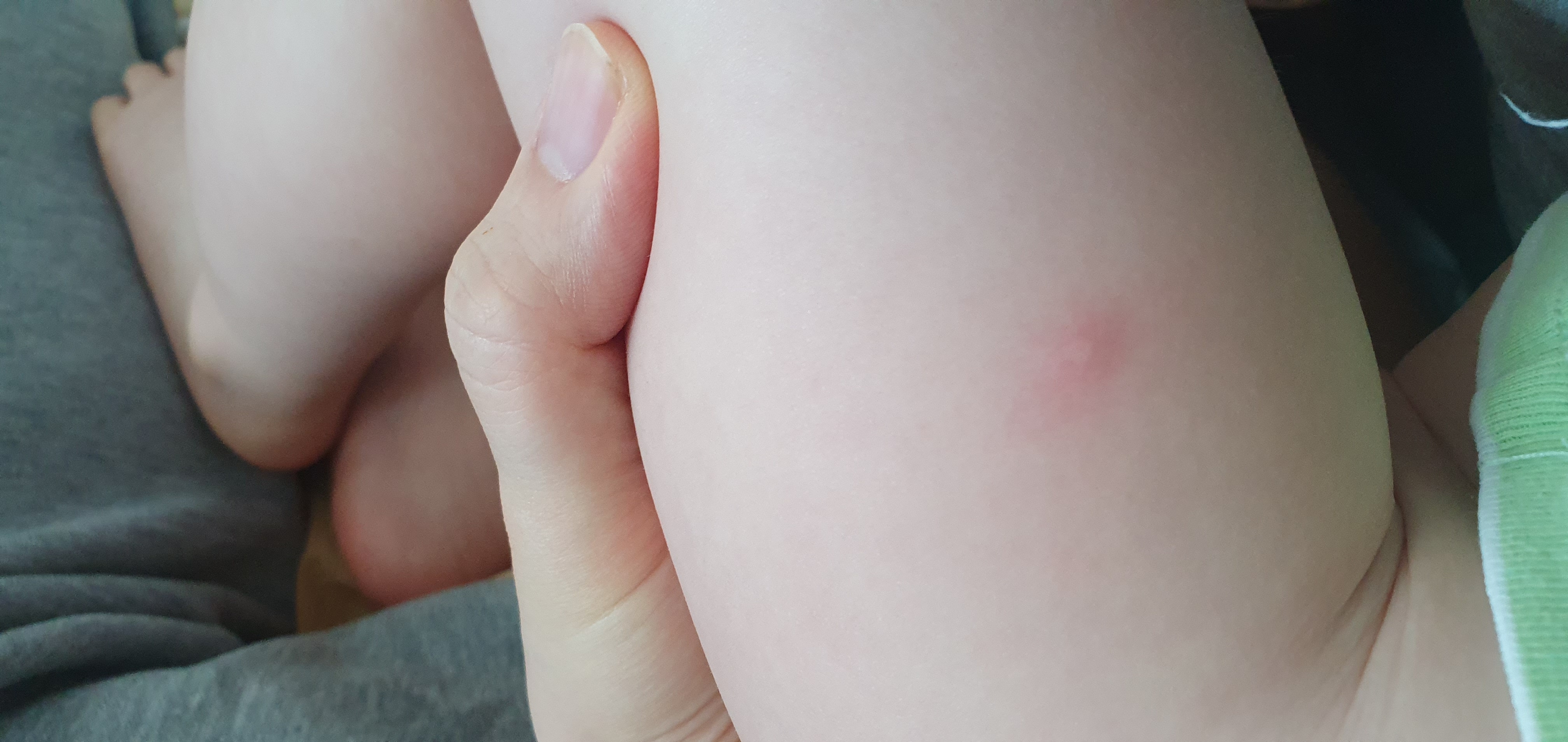 저희 집에 15개월 아기가 있는데 자고 일어나서 보니 몸에 이런 자국이 생겼습니다.