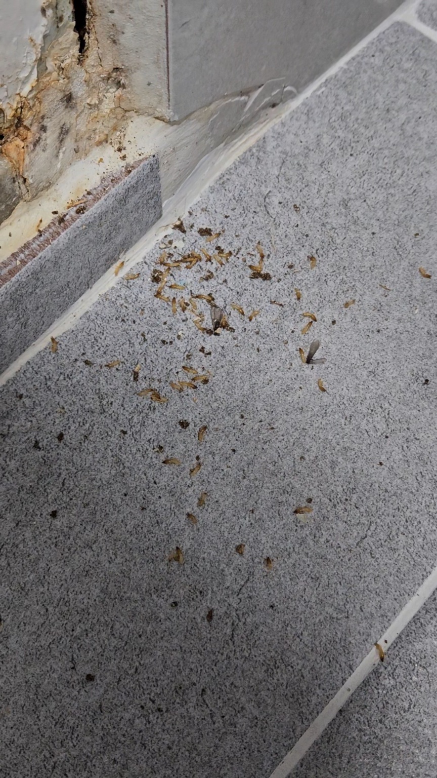 까만색 날개 달린 벌레와 애벌레가 나무 문틀에서 나오는데요.