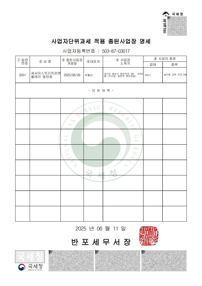 유선상으로 말씀드린 사업자 등록증(사업장 소재지 표시부분) 전달드립니다. 확인 후 처리 부탁드리겠습니다.