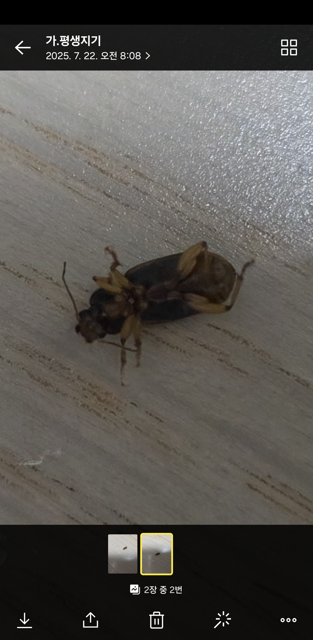 뒤집혀 있어서 어떤 벌레인지 알 수 없습니다. ^^: