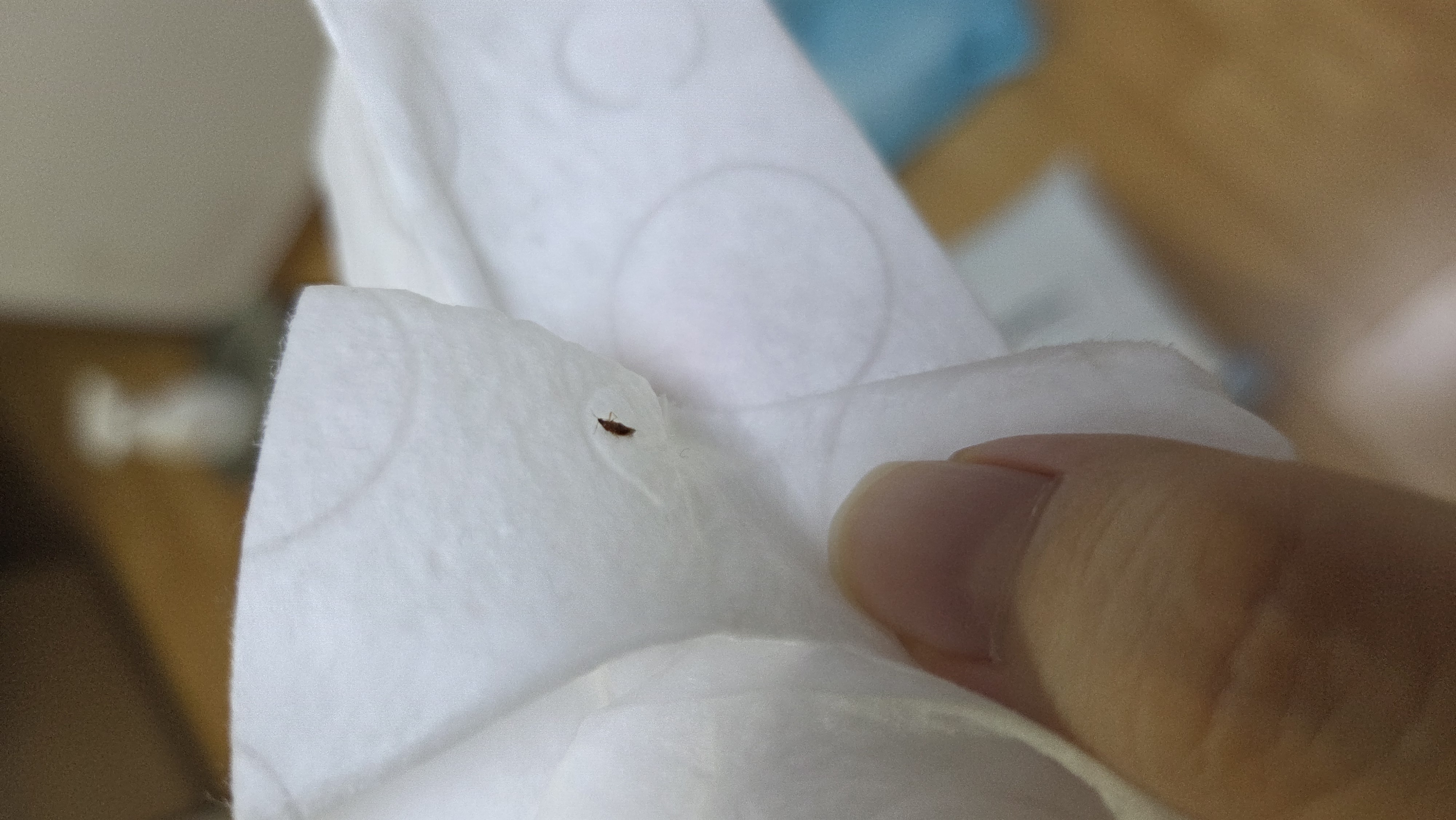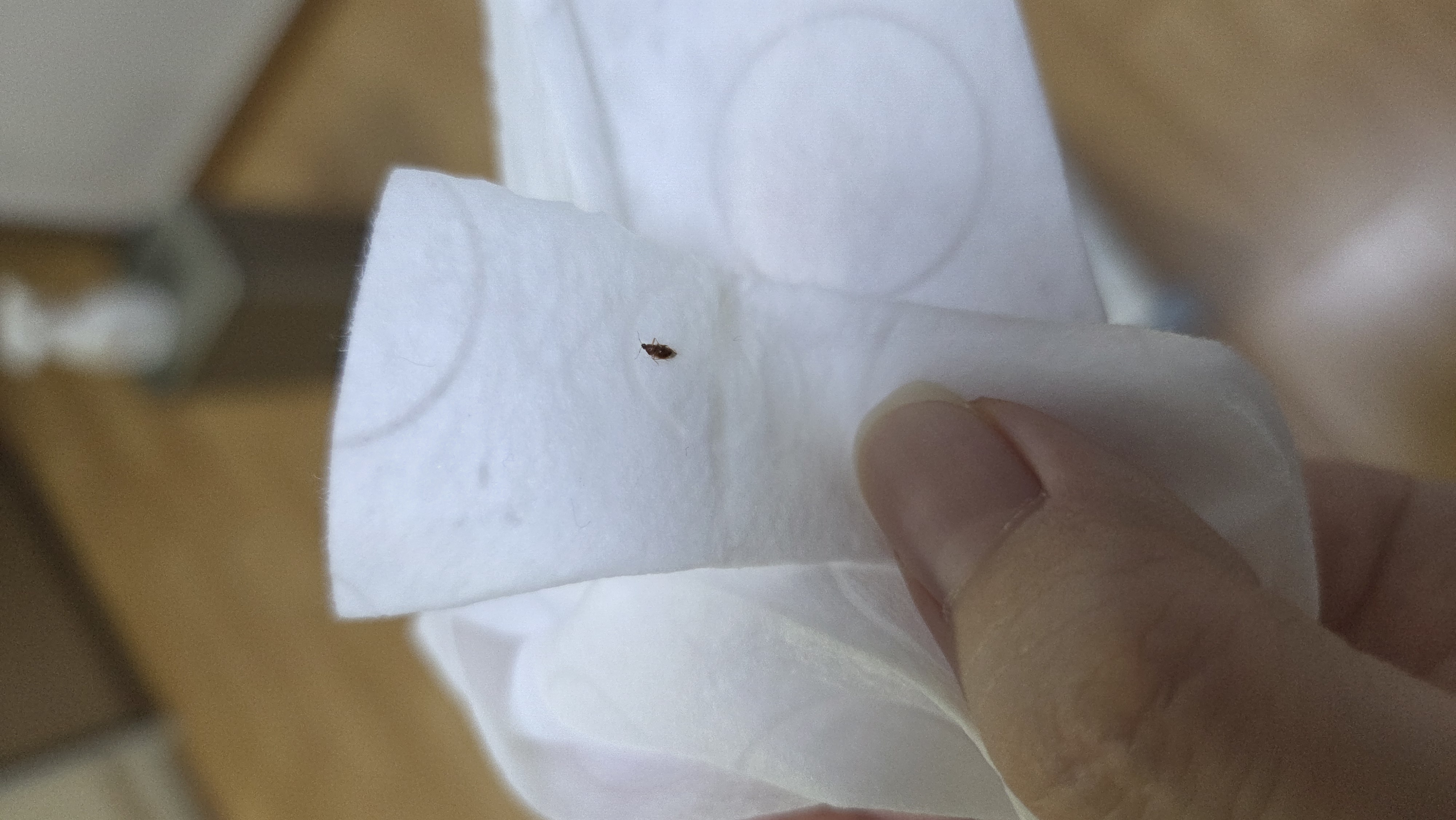 먼지인줄 알고 휴지로 집었는데 이미 죽어있네요...바퀴 유충일까요?