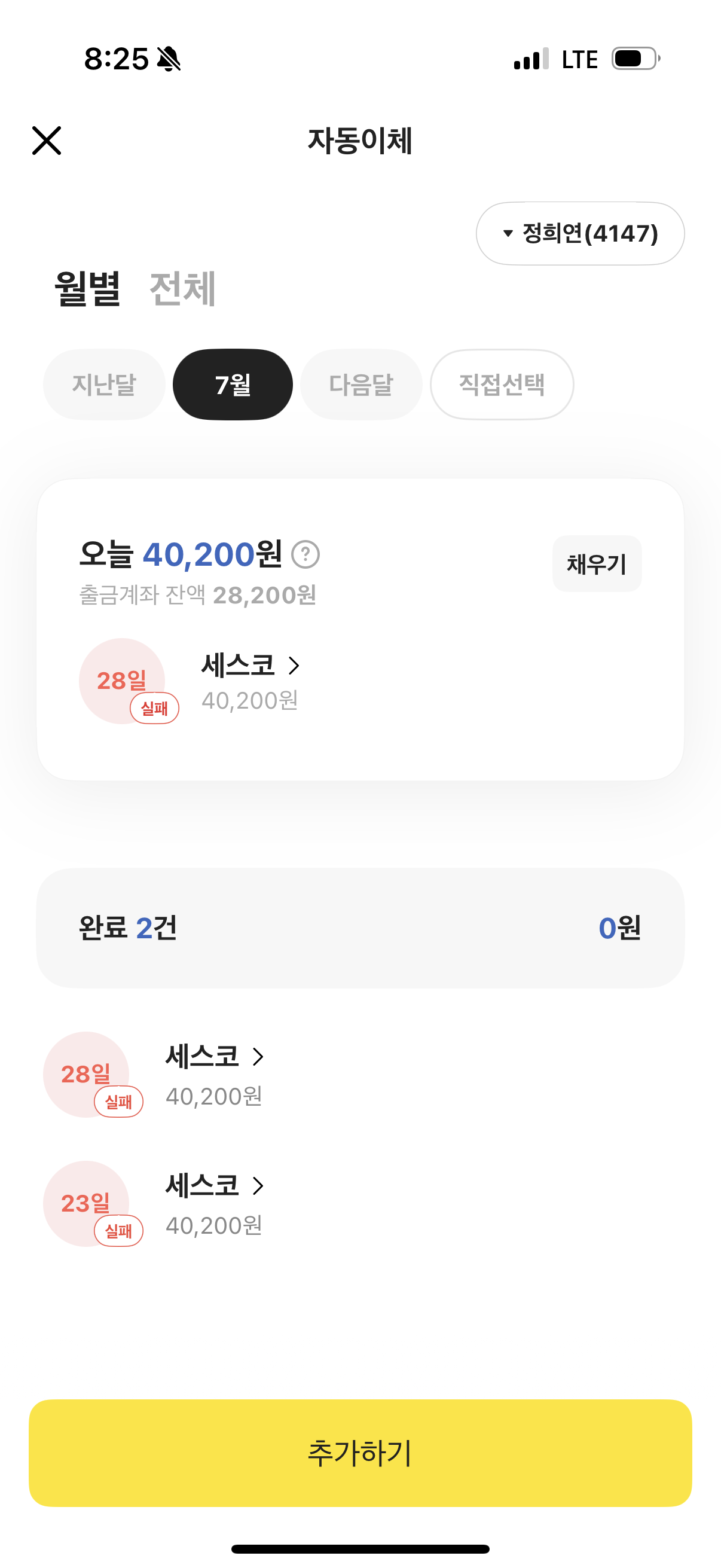 첫달에 긴급진단 받으시고 계약하셔서 3만원 차감되어 7월에는 40,200원