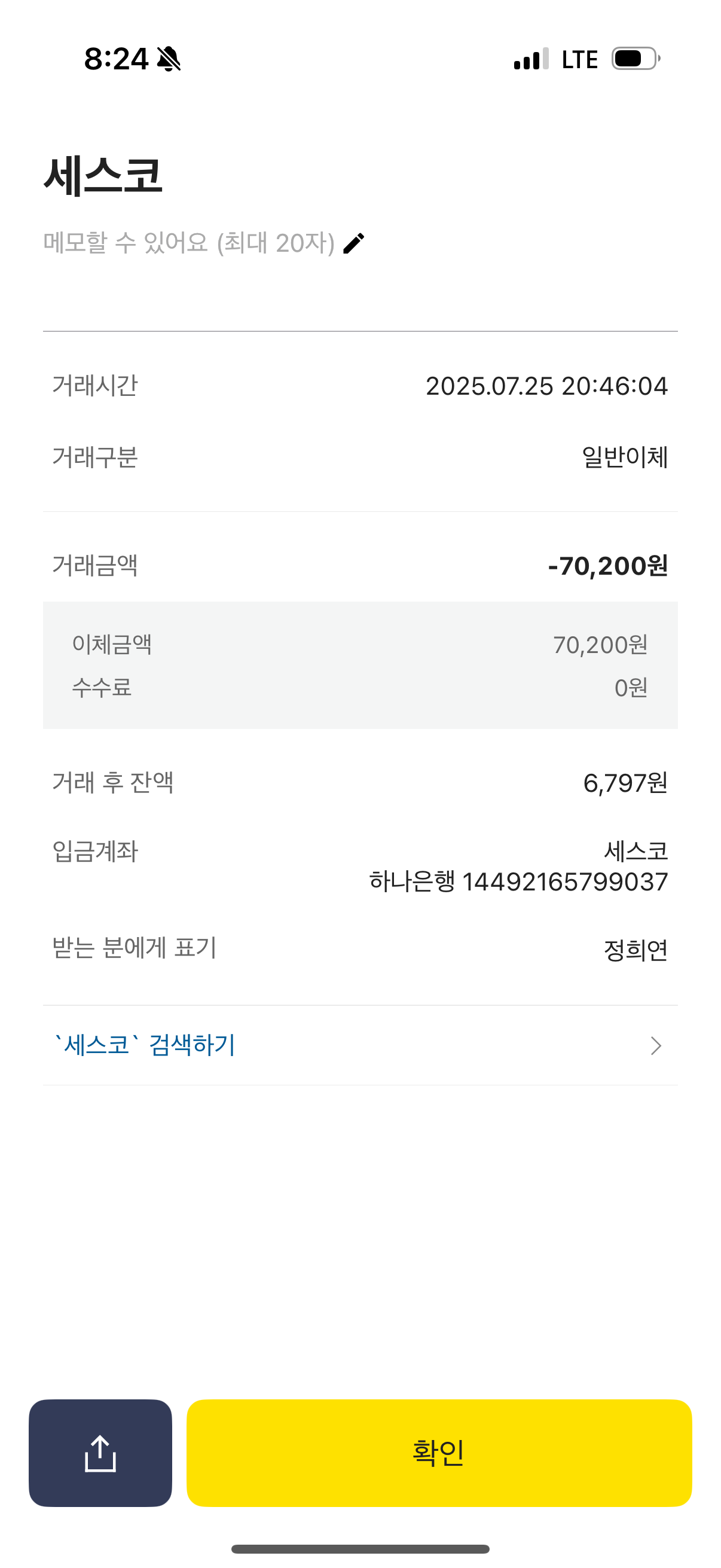 송금하신 70,200원 중 30,000원은 입금확인 후 환불처리해 드리겠습니다.