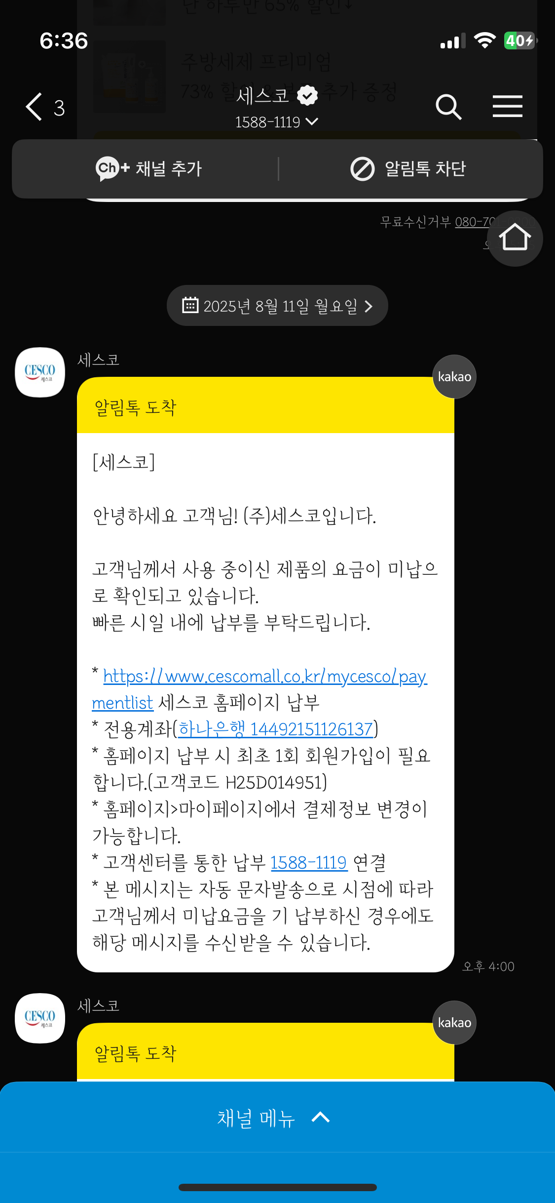 다른 고객의 정보에 번호가 오등록 되었던 것으로 보입니다.