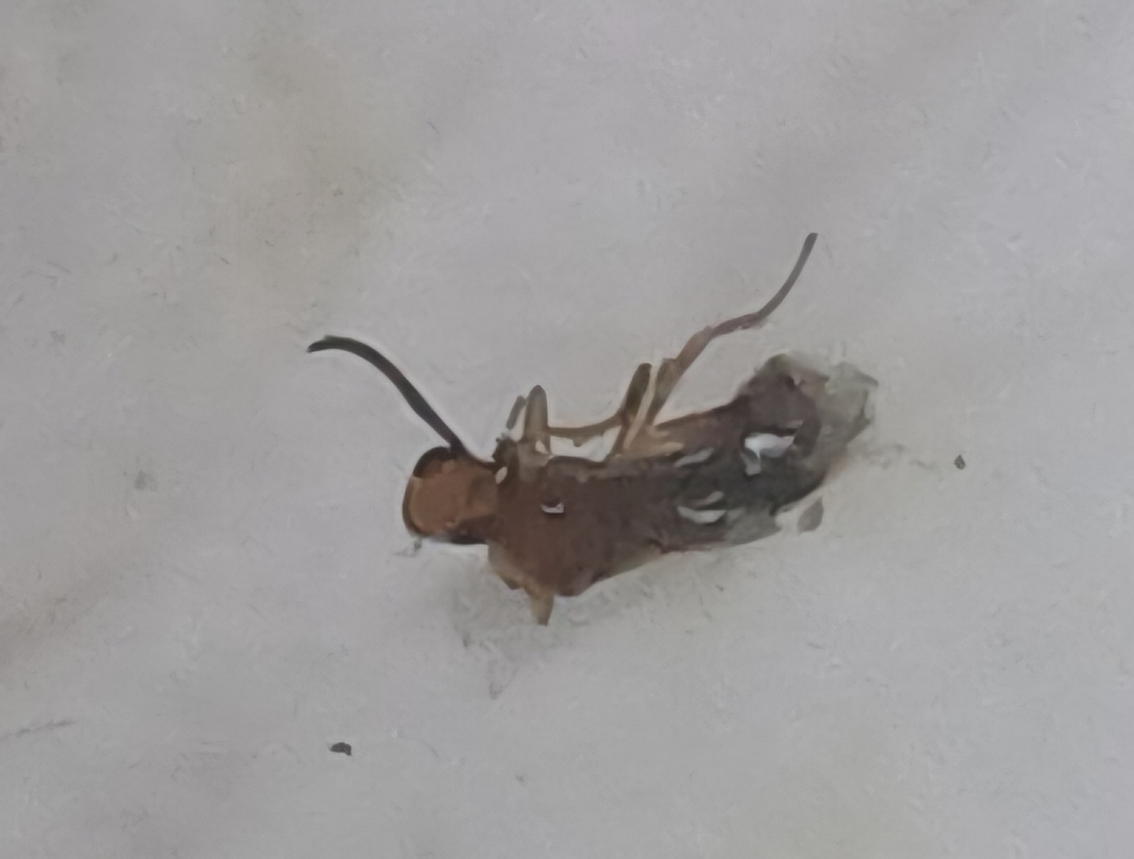 천장 쪽 몰딩 틈 근처에서 죽어 있는 벌레를 발견했는데, 아마 같은 종류일 것 같습니다. 아마 몰딩 사이의 벌어진 틈으로 들어간 것 같습니다.