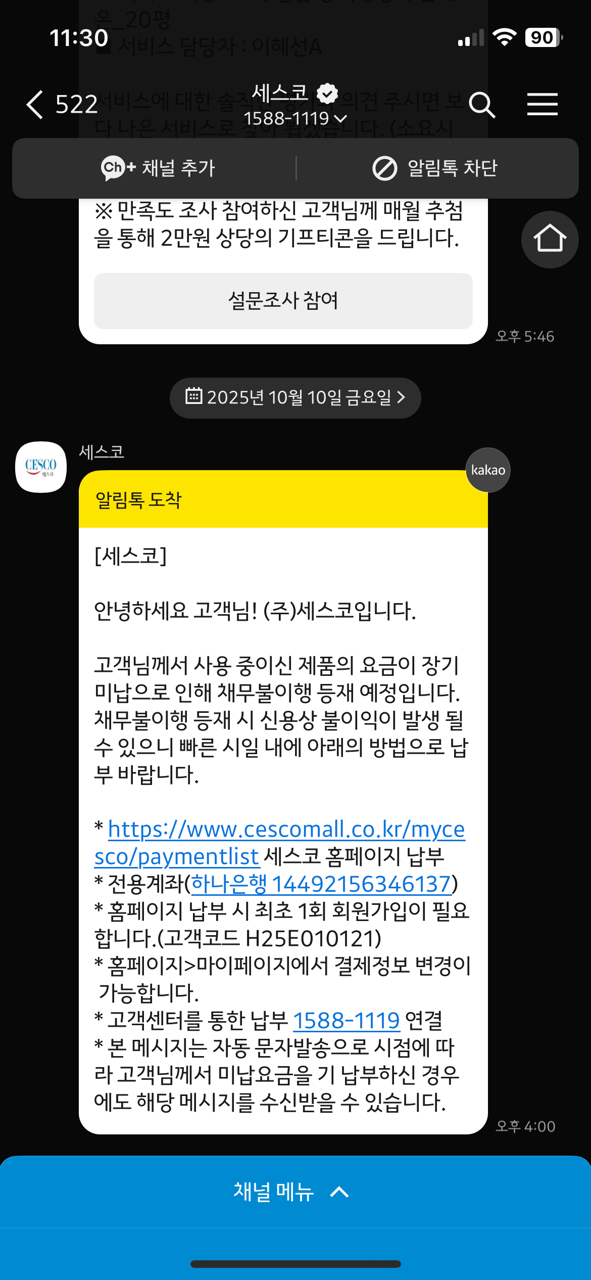 채권추심? 장기미납?