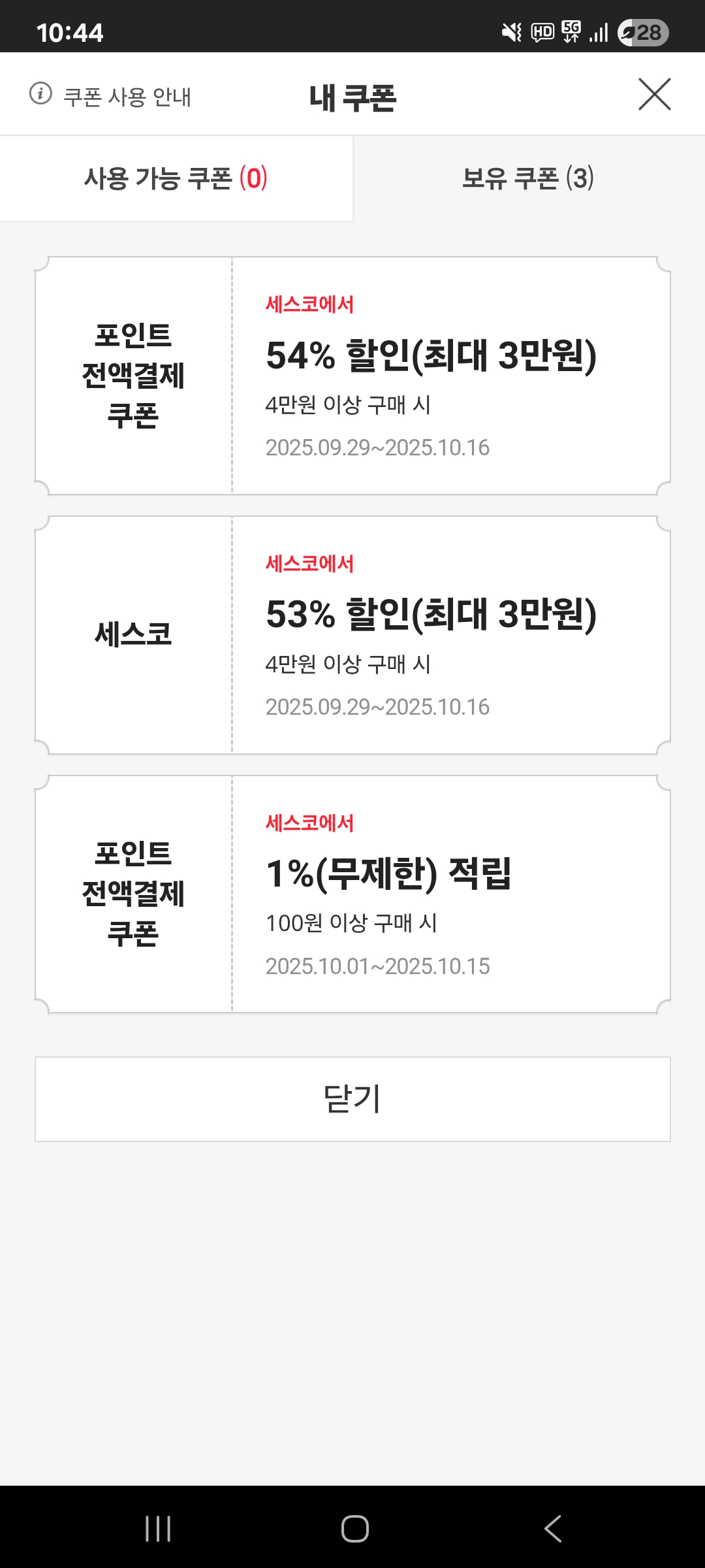 다른 플랫폼에서는 잘써졌는데 세스코는 어디서접속하던지쿠폰적용이안되네요