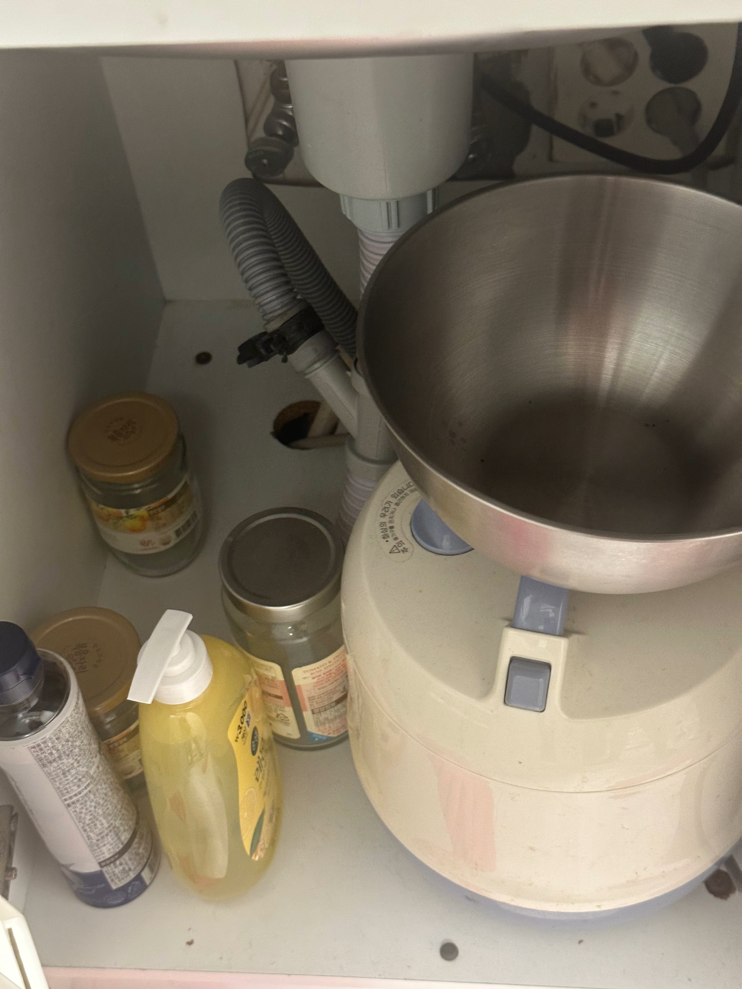싱크대장을 열어보니 스테인리스 볼 안에 까만 가루, 밥솥 아래 부분을 들춰보니 갈색 톱밥같은 가루가 있습니다.