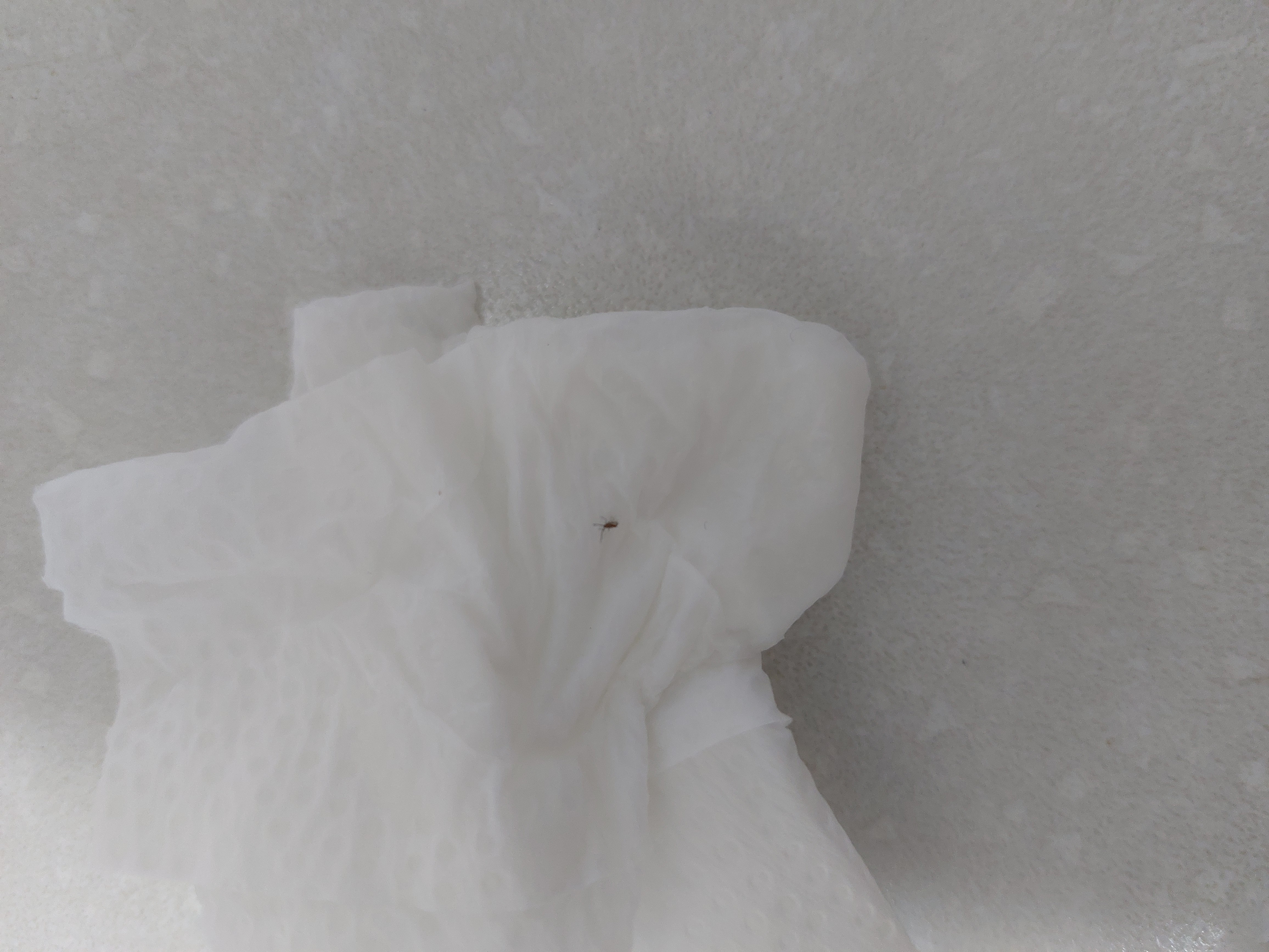 부엌 벽에 아주 작은 검은점처럼 있어 휴지로 닦아 사진을 찍어보니 먼지가 아니고 벌레네요. 휴지로 죽여서 좀 눌리긴 했지만 어떤 벌레인지 확인가능 할까요? 감사합니다.