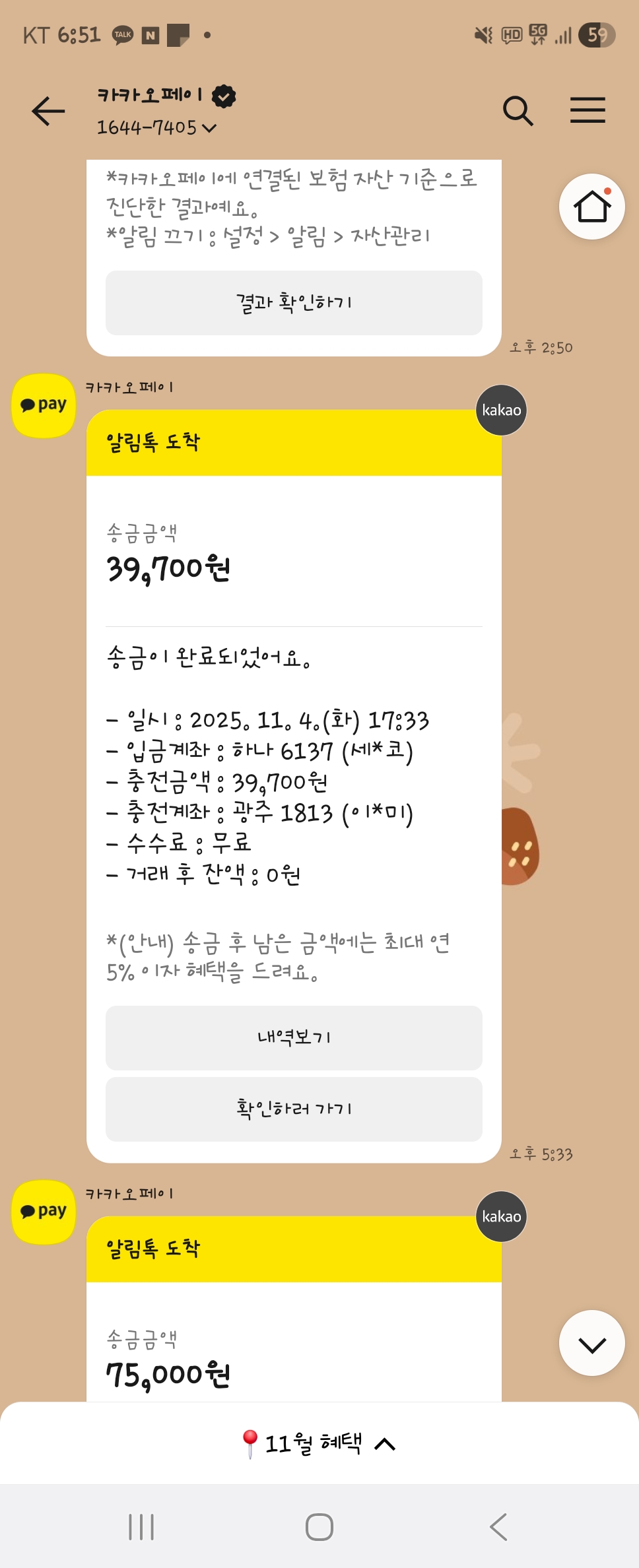 제가 미납으로 확인 후 입금을 카카오페이로 했는데 미납으로 아직 결제가 안됐다고 카톡이 와서 문의 드립니다.