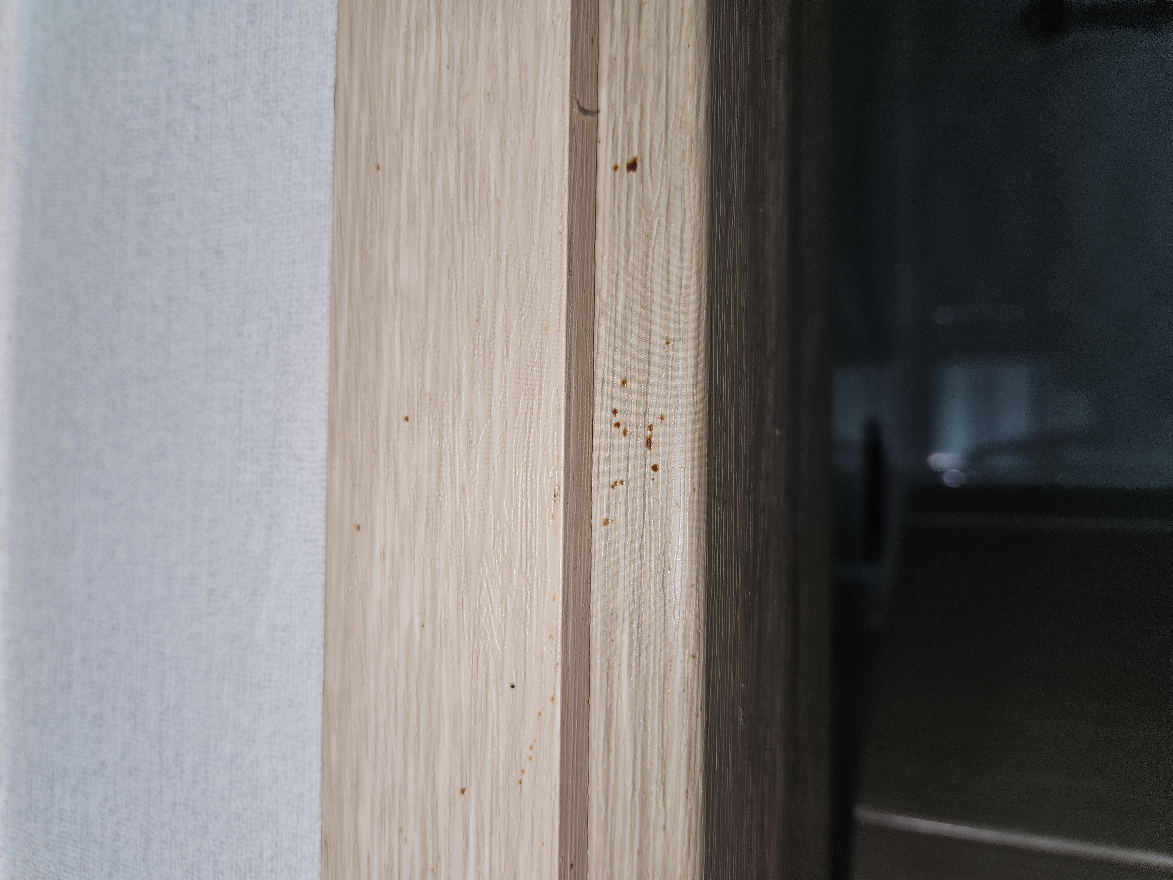 이사온 집의 몰딩에 있는 갈색 자국들. 바퀴벌레 똥일까요?