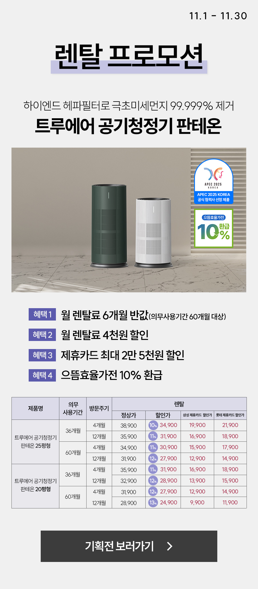 [렌탈료 최대 6개월 반값] 트루에어 공기청정기 판테온 (20평/코튼 화이트)_3
